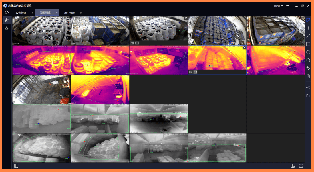 化工園區內大量的高溫、高壓設備(如反應釜、蒸汽管道、鍋爐等)在長時間運行中容易出現溫度異常,可能導致設備故障甚至災難性后果。通過熱成像監控系統,園區管理者可以實時監控設備的溫度狀況,發現過熱、超負荷運行、異常升溫等問題。系統能夠對異常情況進行自動分析,提前預警,防止設備損壞,減少停機時間。